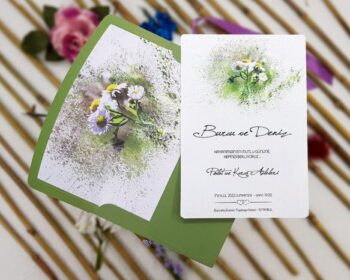 Ecolive Davetiye 7264; sarı çiçekli, yeşil zarflı davetiyeEcolive Davetiye 7267, Çiçekli, Kırmızı Zarflı Davetiye