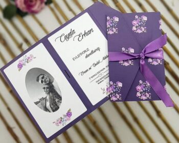 Ecolive Davetiye 7250, çiçekli, isim etiketli, mor renkli davetiyeLiva Ecolive Davetiye 4172
