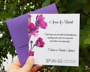 Ecolive Davetiye 7267; renkli çiçekli, kırmızı zarflı davetiyeEcolive Davetiye 7251, Orkide Çiçekli Pencereli Davetiye
