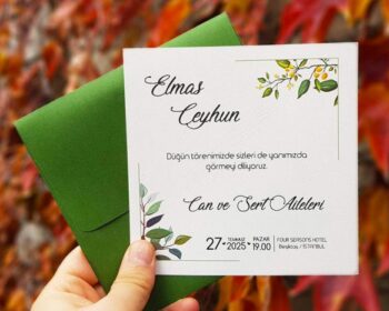 Ecolive Davetiye 7262; karahindiba çiçekli, kuşlu, kahverengi davetiyeEcolive Davetiye 7264, Sarı Çiçekli Yeşil Zarflı Davetiye