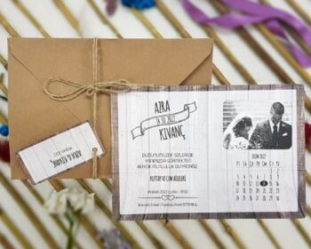 Liva Ecolive Davetiye 4154, Gelin Damat Resimli, Takvimli, Hasır İpli, İsim Etiketli DavetiyeLiva Ecolive Davetiye 4101