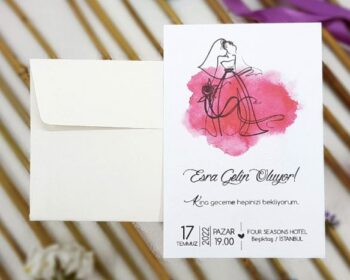 Ecolive Davetiye 7246, karakalem gelin çizimli, sulu boya efektli kına davetiyesiEcolive 7202, Altın Yaldızlı, Geometrik, Siyah Davetiye